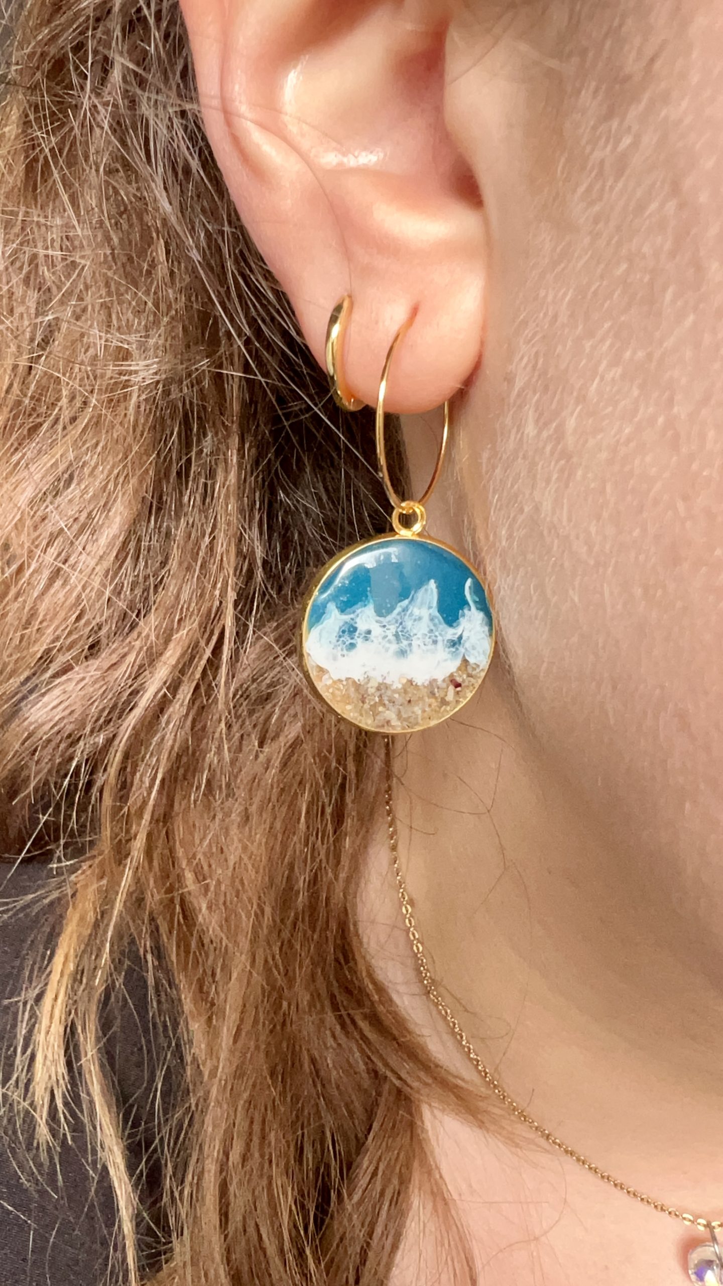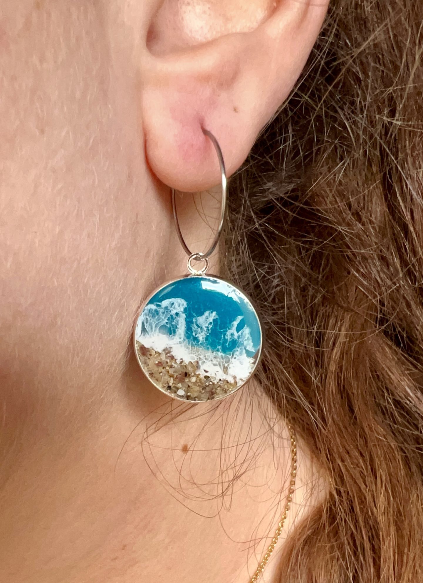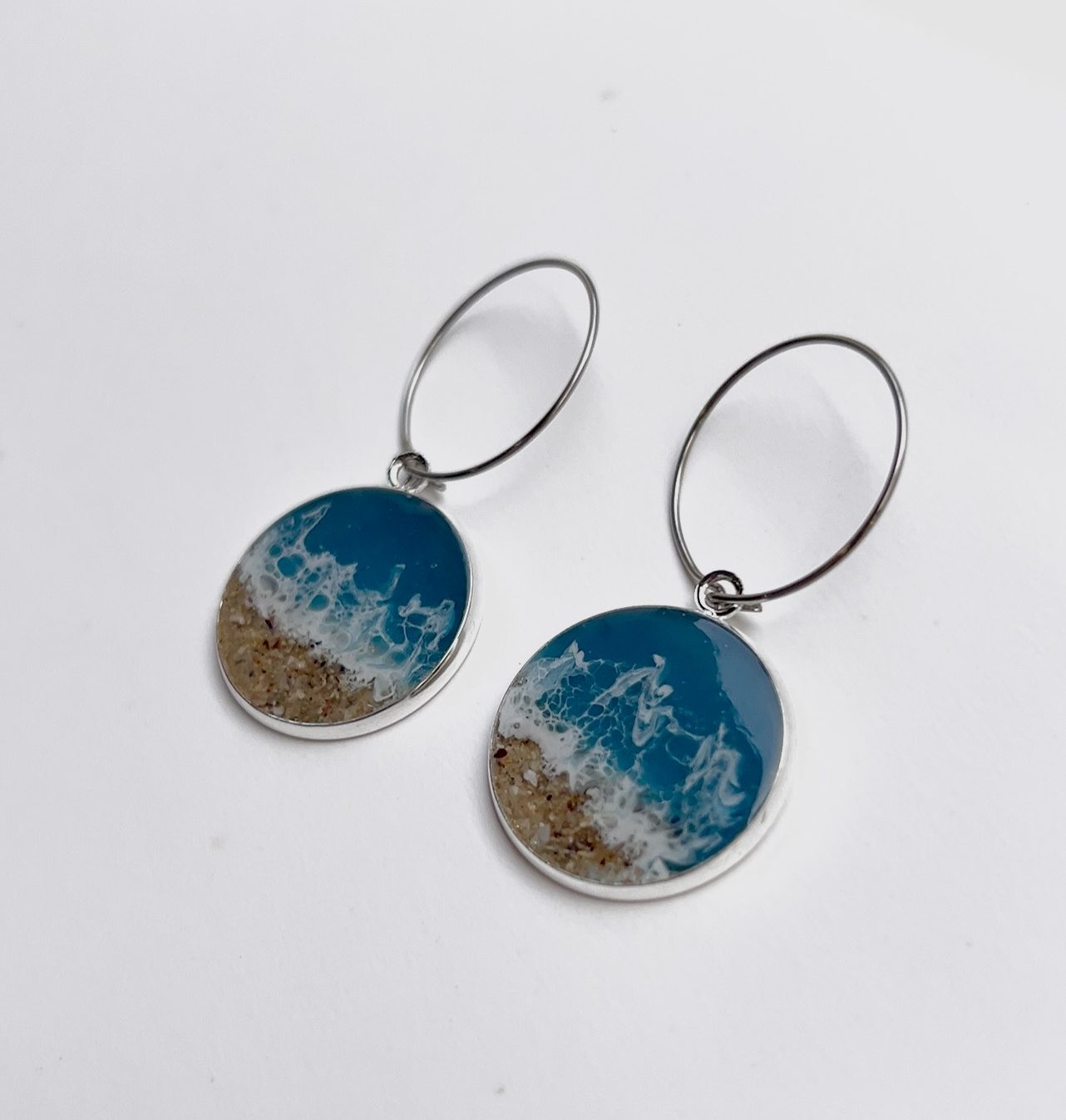 Aros de acero inoxidable con un círculo de mar en miniatura. Un diseño sencillo y elegante que evoca la calma de las olas atlánticas. Resistentes, hipoalergénicos y perfectos para llevar a diario con un toque especial.