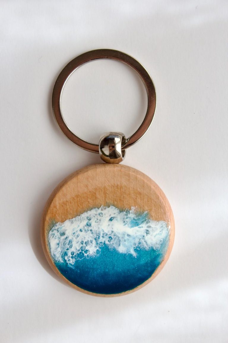 Este llavero artesanal captura la esencia del océano con detalles minuciosos que imitan el movimiento del mar. Cada pieza puede ser personalizada con el nombre de tu tienda, de tu localización, de tus invitados… Lo que lo convierte en un producto exclusivo y memorable.