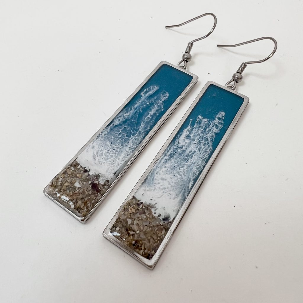 Gancho hippie con un rectángulo grande de mar. Hechos en acero inoxidable, son el complemento perfecto para las almas libres que sienten el mar como parte de ellas. Una pieza atrevida, con personalidad y espíritu bohemio.