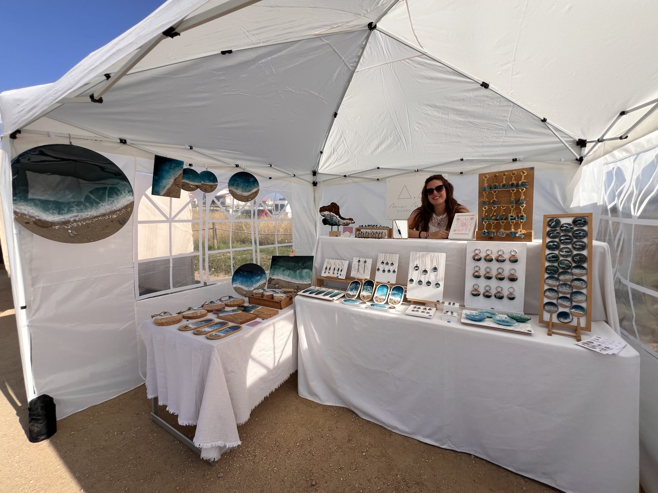 En cada feria, mercado o taller que imparto, mi objetivo es que quien se acerque a mi trabajo sienta un pedacito de mar en sus manos. No vendo solo objetos: comparto momentos, emociones y un estilo de vida conectado con la calma, la fuerza y la belleza de las olas.